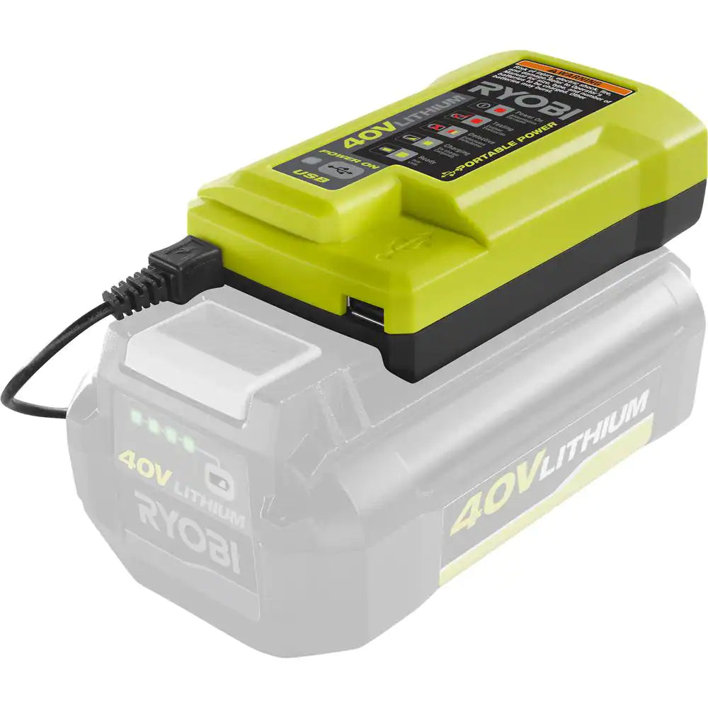 Charge your 40V lithium-Ion batteries with this charger from RYOBI. Compatible with all RYOBI 40V batteries, this charger is equipped with a USB power source to charge your small electronics while plugged in. This compact charger has an LED light indicator that shows the status of battery. Featuring innovative charging technology, it is equipped to protect and extend the life of the battery. Backed by a 3-year warranty, you can trust this charger to keep your batteries work-ready all season long.
