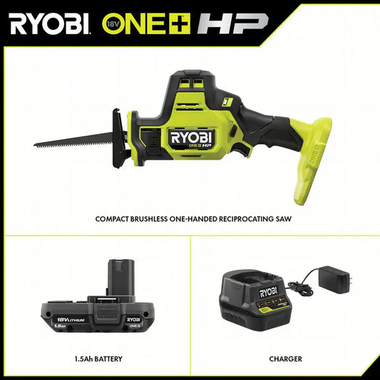 ONE+ HP 18V Brushless Cordless Compact One-Handed Reciprocating Saw Kit with 1.5 Ah Battery and 18V Charger