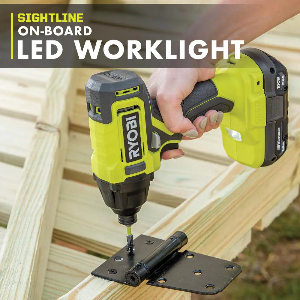 RYOBI introduces the 18V ONE+ Cordless 1/4 in. Impact Driver Kit with (2) 1.5 Ah Batteries and Charger. The 18V ONE+ Cordless 1/4 in. Impact Driver comes equipped with a powerful motor that provides 1,800 in./lbs. of torque. The 1/4 in. quick connection collet ensures convenience while switching out bits. The on-board LED worklights creates extra visibility for all your projects needs. The included batteries and charger are compatible with all RYOBI 18V Tools. Best of all, it is part of the RYOBI 18V ONE+ System of over 280 Cordless Products that all work on the same battery platform. This 18V ONE+ Cordless 1/4 in. Impact Driver is backed by the RYOBI 3-Year Manufacturer's Warranty and includes (2) 1.5 Ah Batteries, 18V Charger, and operator's manual.